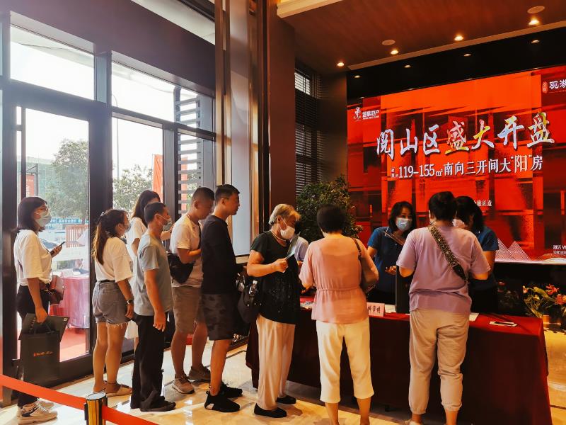 上午8點30分,門前排隊的150余名客戶在工作人員的引導下依次進入選房等待區,9點30分選房正式開始。隨著一聲聲“恭喜XX先生成功選到X號樓XXX的心儀房源”的喜訊傳來,每一名置業顧問都高速運轉,時常一路小跑引導客戶到收款區鎖定房源付款。選房區的氛圍也格外緊張,經常出現兩組客戶爭搶一套房源的情況,好在置業顧問及時疏導,讓每一位客戶最終都選到了心儀的房源。截至當天中午12點50分選房正式結束,1號樓全部售罄,整個閱山區銷售近百套住房。