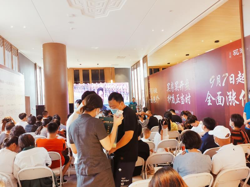 “鈴鈴鈴……”,9月6日凌晨3點50分,金猴觀湖閱山項目案場經理郝金鑫接到夜班保安電話:“郝經理,現場已經有不少客戶在排隊了,您趕緊安排人早點過來吧”。得到消息后,郝經理立即通知案場全體人員提前3個小時進入了“備戰”狀態。雖然對閱山區開盤當日會有客戶提早前來排隊領號有所預判,也提前在營銷中心門前準備了椅子、太陽傘、水、月餅、水果等物品,但客戶這么急切,提前這么早前來排隊領號還是出乎了大家的意料。